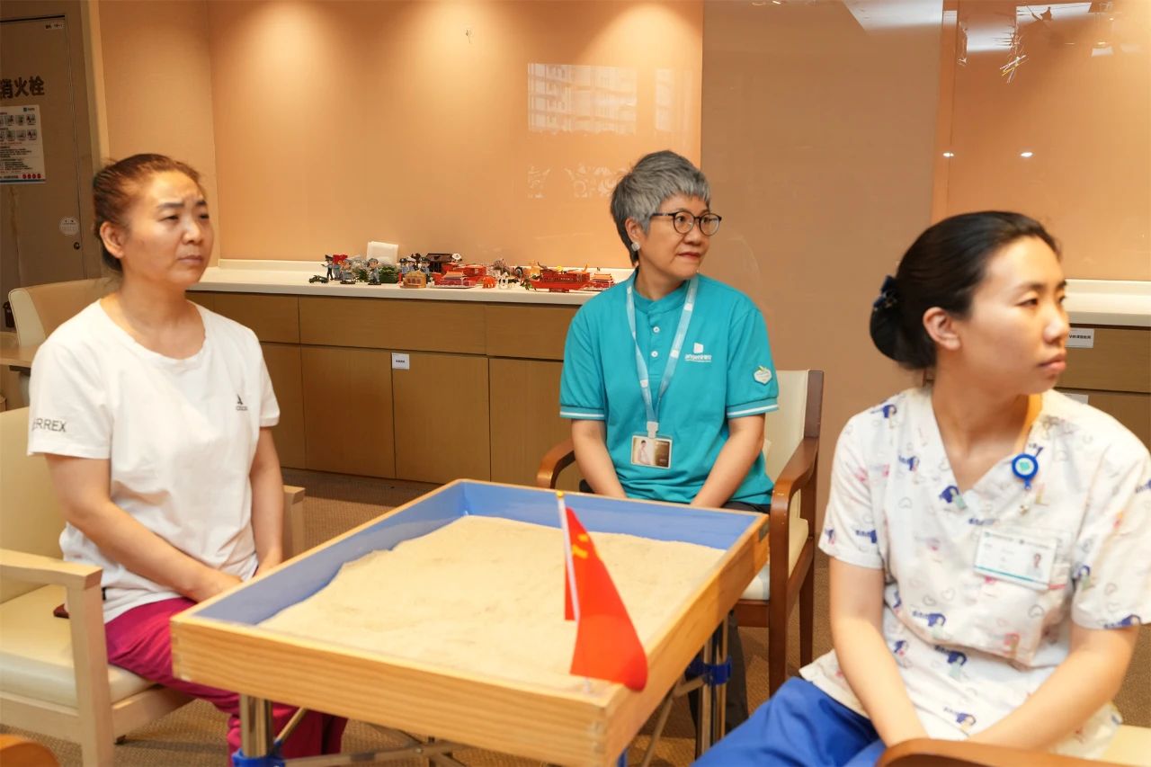 个体的健康与幸福汇聚成国家繁荣昌盛的底色。活动最后,在心理专家王舒娟老师的引导下,现场专家与客户以“庆祝与祝福”为主题,运用沙盘共同构思、摆放杀局,在沙的世界里默契合作。用心呈现心中对党的深情厚谊、对国家发展的美好期许、对健康和谐生活的向往。