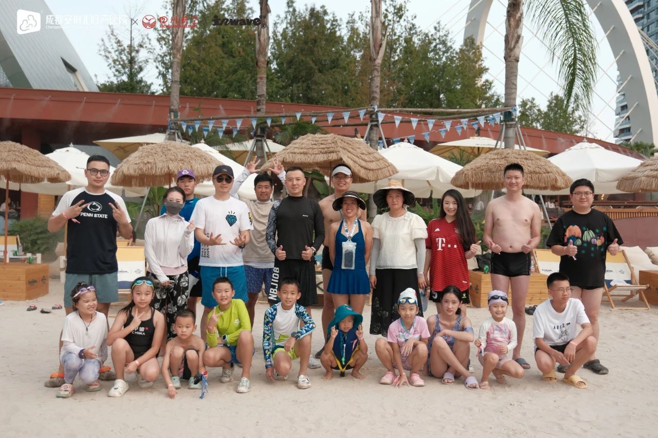 下午的室外温度也是在40度左右徘徊,活动一开始,小朋友和家长们就跳进了无边泳池,把暑热都一起扔进了水里。