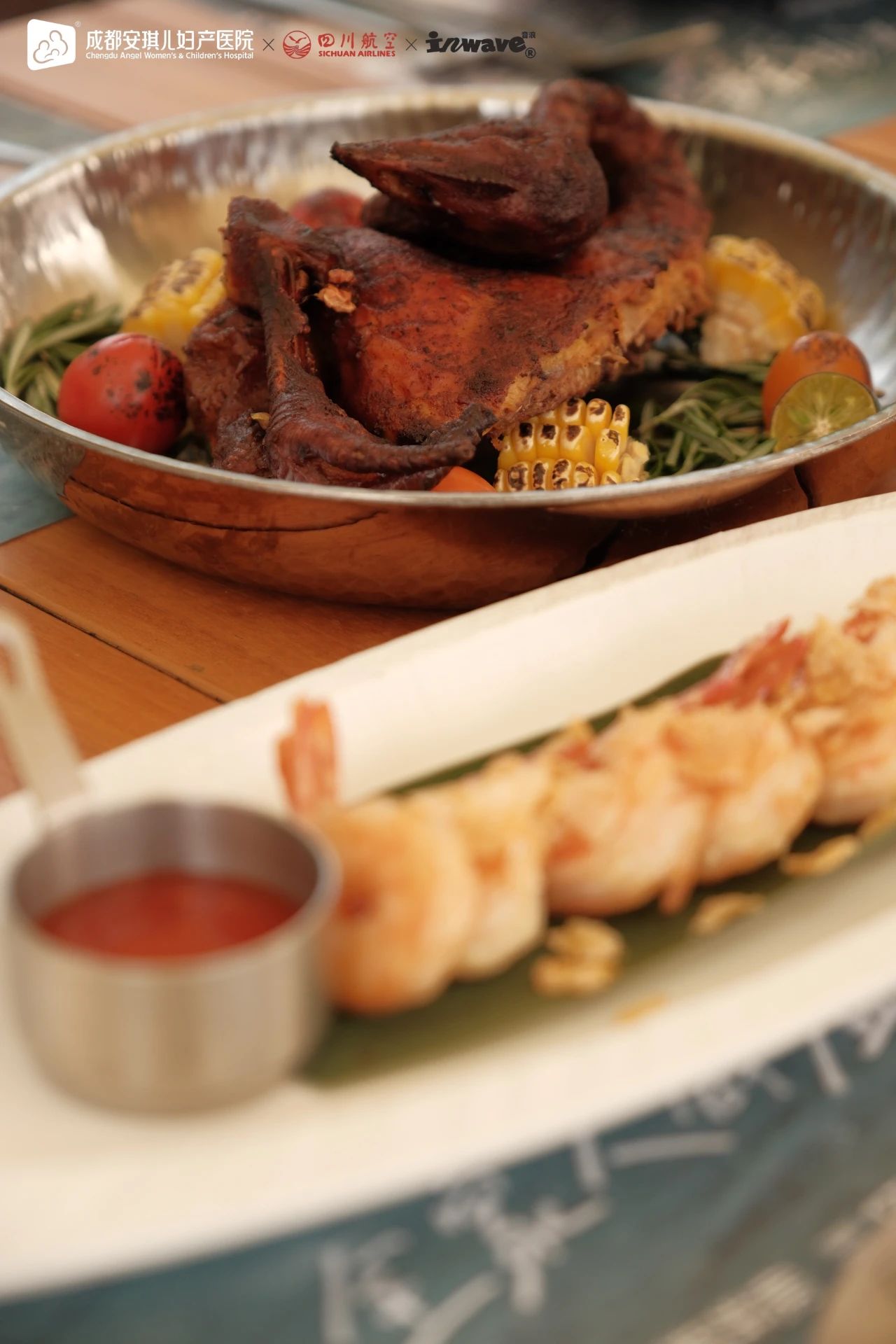 水上运动结束后,丰盛的晚餐已经在桌上等着大家啦!消耗完热量,可以饱餐一顿啦!在夕阳和美食中结束了愉快的一天!