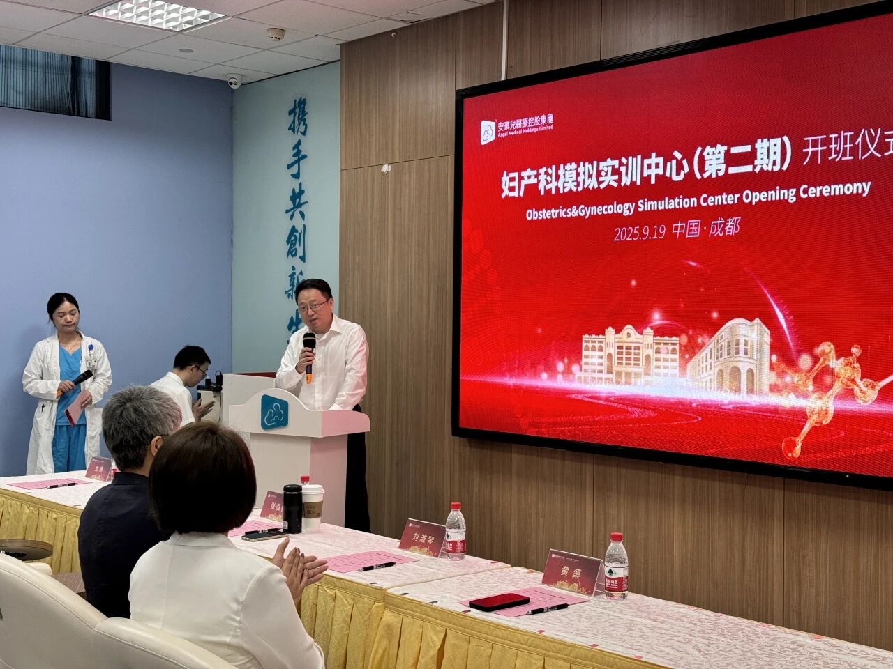 作为本次实训中心负责人,成都安琪儿妇产医院业务副院长肖兵先生也带来精彩发言。肖院长自2008年以来,在全国各地一直推进产科模拟实训,始终秉持 “标准化、实战化” 的理念,聚焦产科临床常见急症与关键技能,为基层医护人员搭建了高效的学习平台。期间我们见证了越来越多的医护人员通过实训提升能力,守护母婴健康的力量不断壮大。我们相信“星星之火,可以燎原”,每一次实训都是一次力量的传递,每一位参训学员都是守护母婴健康的火种,未来这些火种将在各自的岗位上发光发热,为更多家庭带来希望。