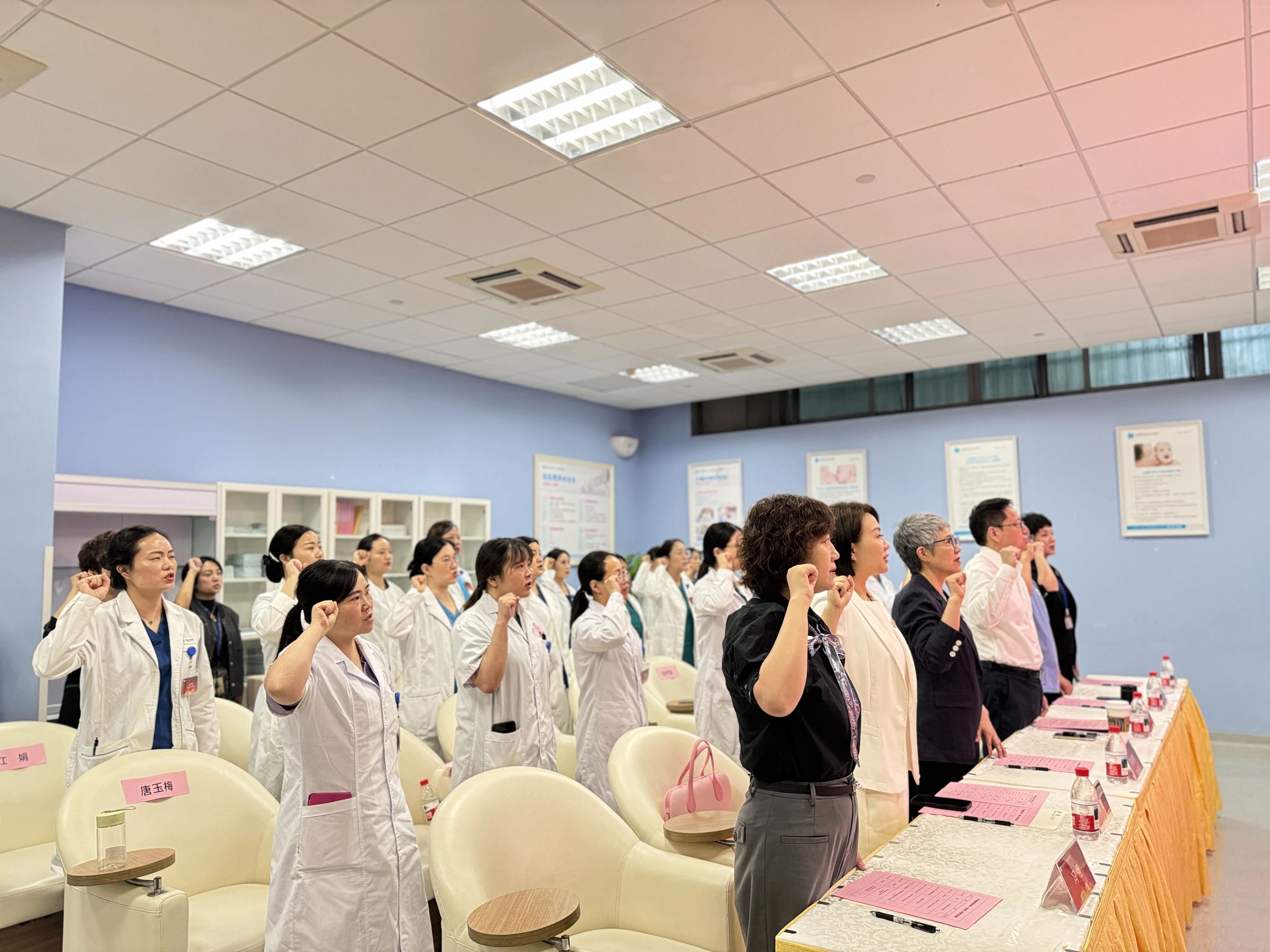 最令人动容的环节当属现场宣誓。全体参训学员举起右拳,庄严回顾医学生誓言。“健康所系,性命相托……” 铿锵有力的誓言回荡在会场,不仅是对初心的坚守,更是对责任的承诺。肖院在宣誓环节强调,誓言不是一句口号,而是融入日常工作的行动准则,希望大家始终牢记誓言,以精湛的医术、高尚的医德服务患者。