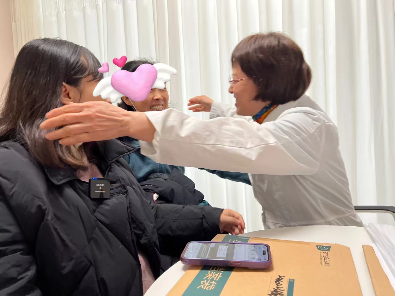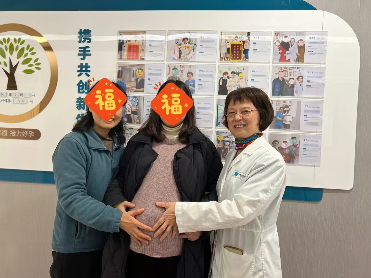 d女士在冯医生的调理下,很快就顺利怀孕了,在孕期特地来向冯医生报喜,三位女性拥抱在了一起。