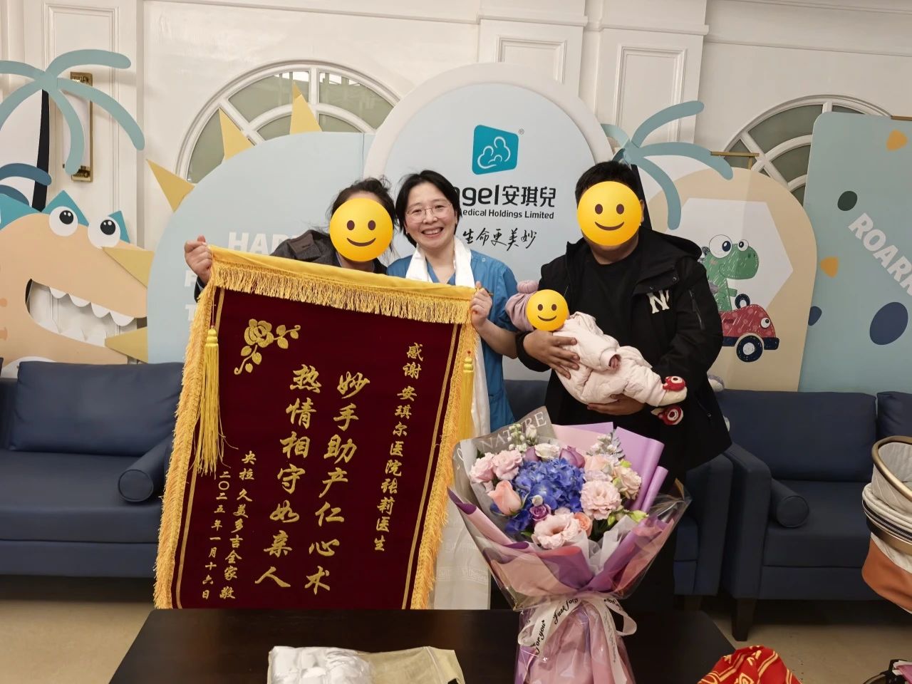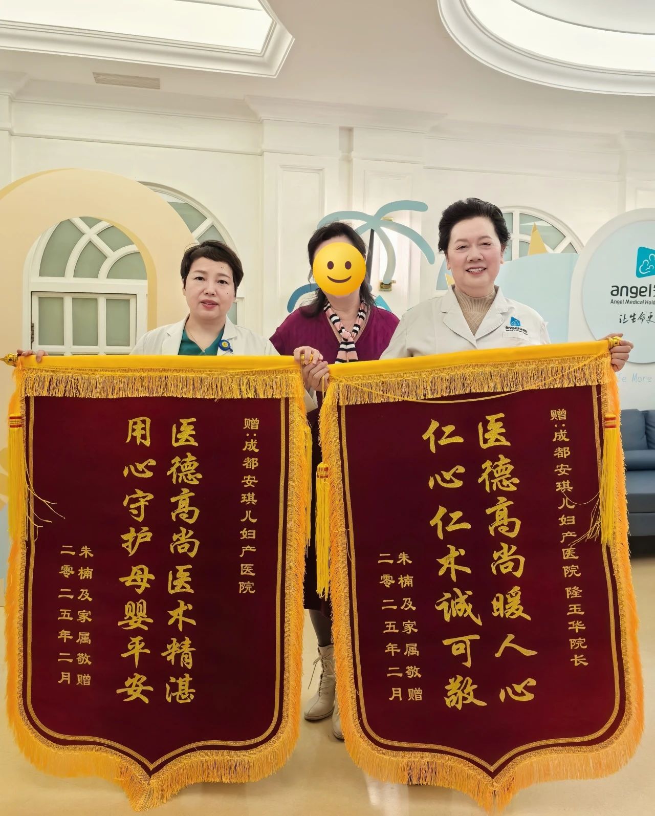 不孕不育科也迎来了一份沉甸甸的感激。一位婚后五年未孕的客户,在其他医院治疗两年未果后,于去年三月来到安琪儿生殖不孕不育科。面对复杂病情,我院专家团队制定了详细的诊疗方案,通过宫腹腔镜联合微创探查诊治,术后经恢复治疗,她于今年六月顺利自然怀孕。孕期过程中,李女士经历了先兆流产、前置胎盘等挑战,但在我院医护人员的精心治疗和保驾护航下,最终于今年二月顺利剖宫产下一个健康的男宝宝。这份锦旗,凝聚了李女士全家人对安琪儿医护人员无尽的感激与敬意。