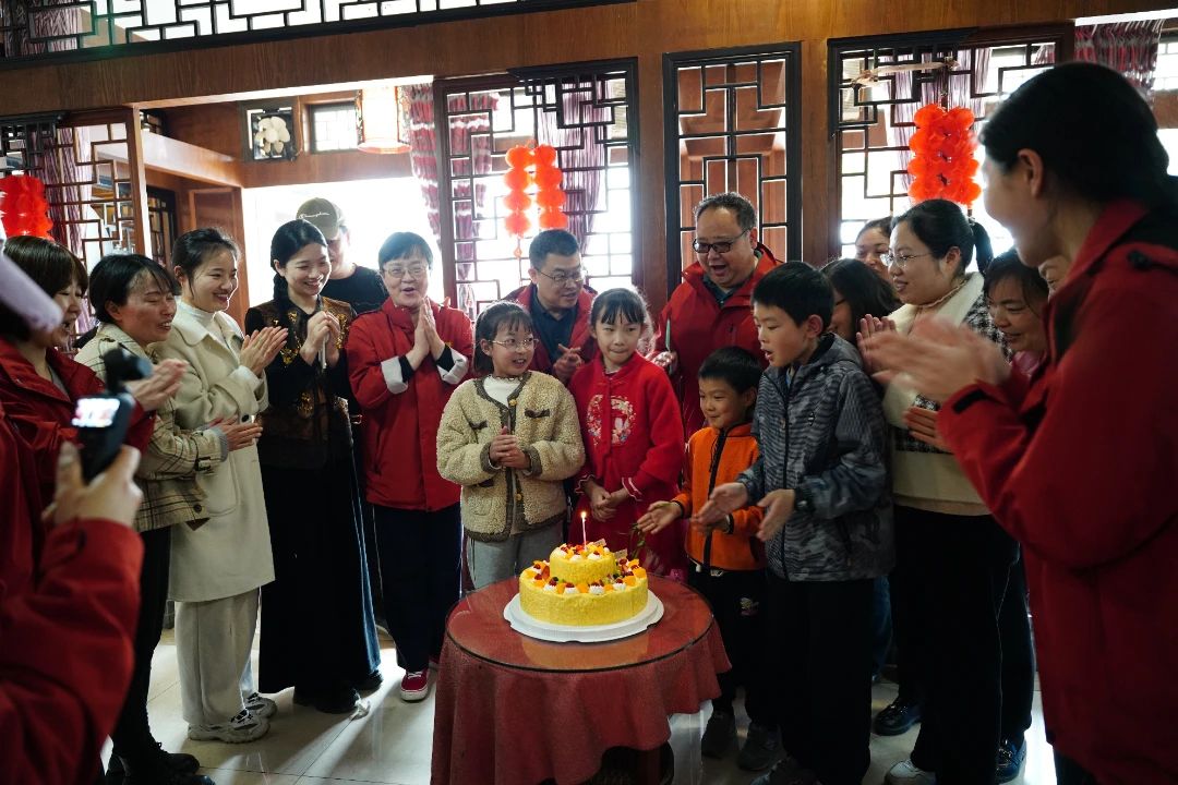 众人齐声唱起温馨的生日歌,安琪儿寿星们在歌声中许下心愿,共庆一季度生日会。