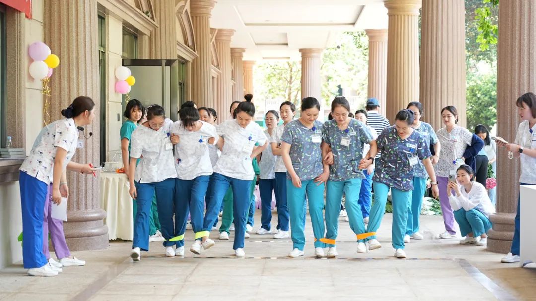 活动最后,一场充满趣味的户外游戏环节将气氛推向高潮。紧张刺激的多人竞走、妙趣横生的你画我猜、柔情满溢的插花环节....护理人员们在游戏中尽情欢笑、洋溢着青春与活力;在轻松愉快的氛围中增进了彼此的感情,增强了团队的凝聚力和向心力。