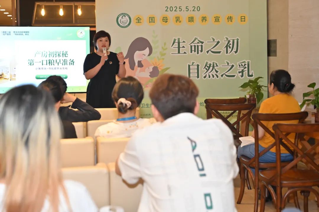 现场,母乳喂养小课堂为准妈妈们赋能。母婴护理中心杨艳主任深入浅出地讲解了生命之初的哺乳本能:婴儿出生后的黄金一小时如何激发宝宝的寻乳反射,母乳中蕴含的营养成分如何为新生儿提供天然护盾,她以丰富经验为准妈妈们送上实用的喂养宝典。“今天学到了超多实用知识,终于不再对母乳喂养感到焦虑了!” 一位准妈妈在课堂结束后兴奋地说。