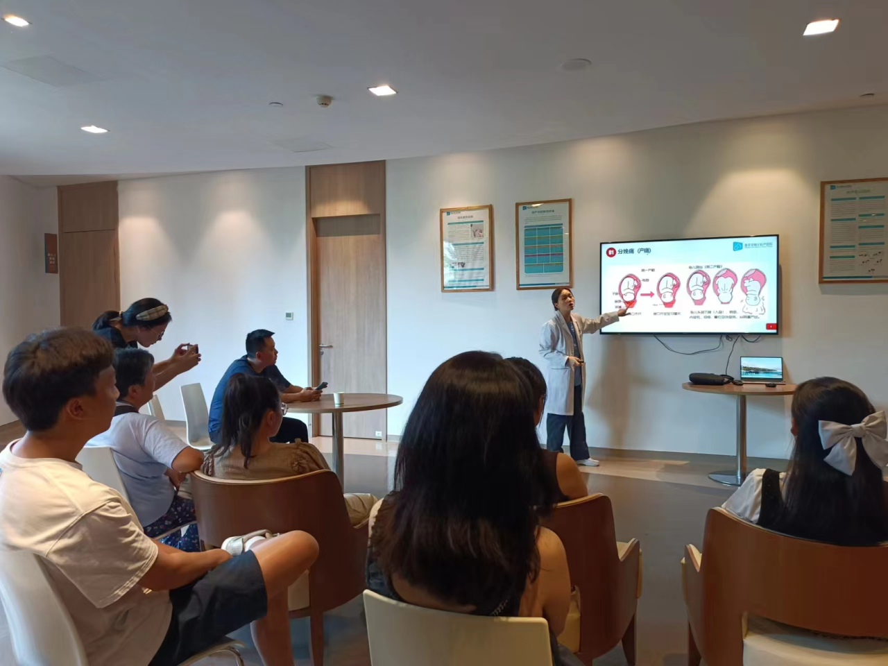 聆听完无痛分娩的专业讲解后,孕妈准爸们在助产士的引导下,走进安琪儿国际ldr一体化产房来了一次“深度畅游”。可以变换分娩体位的多功能产床、舒适的沙发、专属卫生间,家庭化的氛围让人感到温暖而放松。