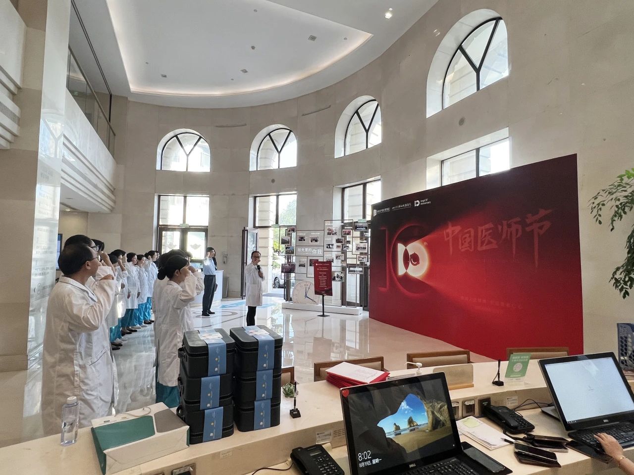 为庆祝第七个中国医师节, 弘扬“敬佑生命、救死扶伤、甘于奉献、大爱无疆”的崇高精神。8月19日,在安琪儿医疗控股集团旗下成都安琪儿妇产医院蜀汉院区1号楼1楼大厅,迎来了第七届中国医师节庆典活动,院区洪川杰院长携肖兵副院长、兰典运营副总经理、尹芳芳运营副总经理等院领导班子成员,各职能科室主任及全员医生医技人员齐聚一堂,共同见证这一重要时刻。
